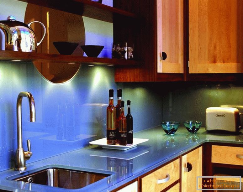 Do prednje strane u kuhinji izlazi, privlači pogled, šank za pult. Ovo je vrsta "ostrva" od obojenog drveta.